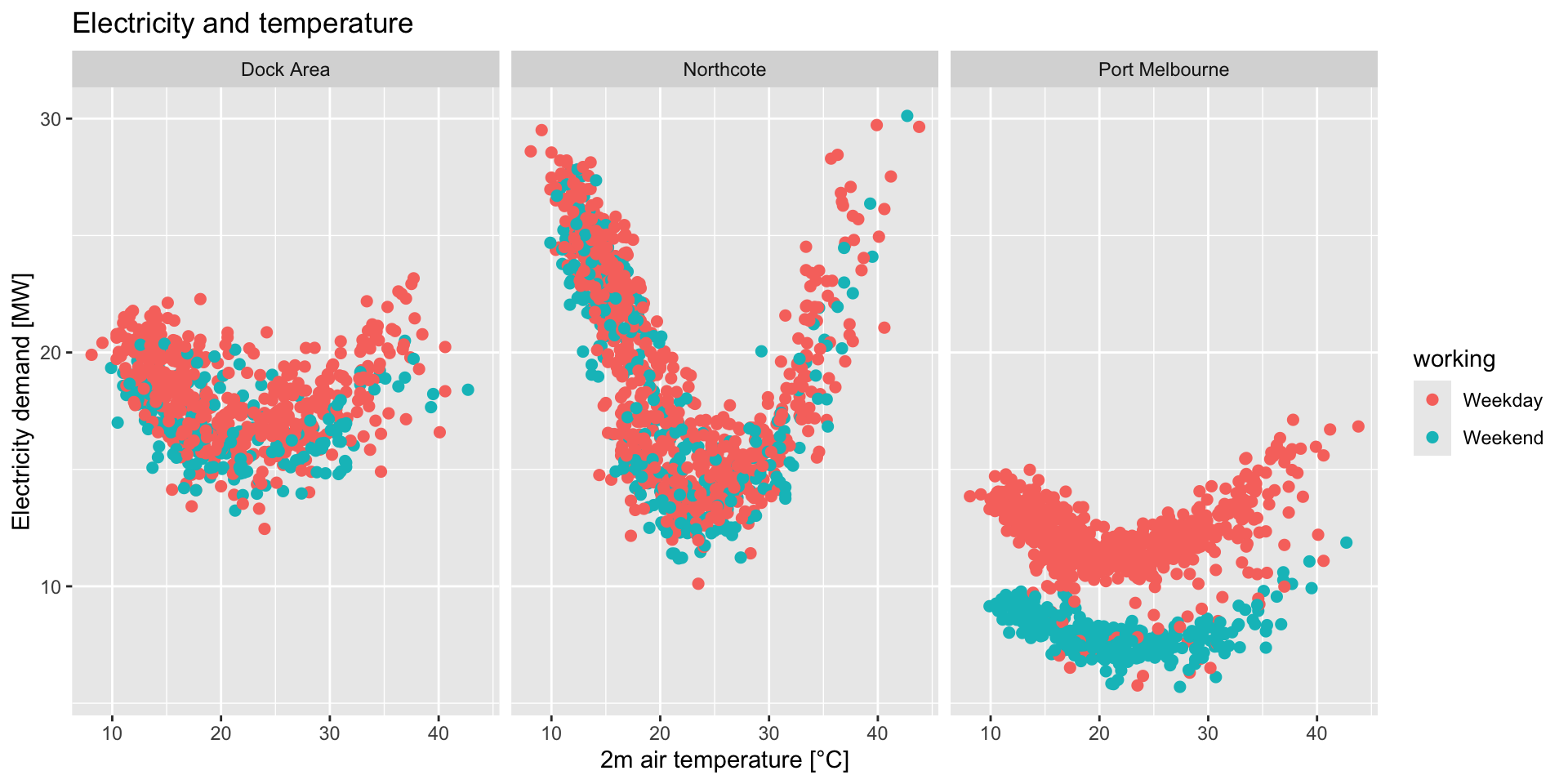 Your data is electricity demand and temperature at 3 inner Melbourne sites: